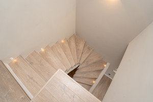 A két épület nagy távolságra, kb. 30 méterre helyezkedik el egymástól, így teljes intimitást biztosítanak. A domboldal magasabb pontján épültek, az utcáról mindkét lakás külön bejáraton közelíthető meg. Egy épületen belül két, teljesen különálló otthon található, mindegyik saját, kizárólagos kerttel és közvetlen kertkapcsolatos nappalival. Az épületek csak a garázsoknál érintkeznek.