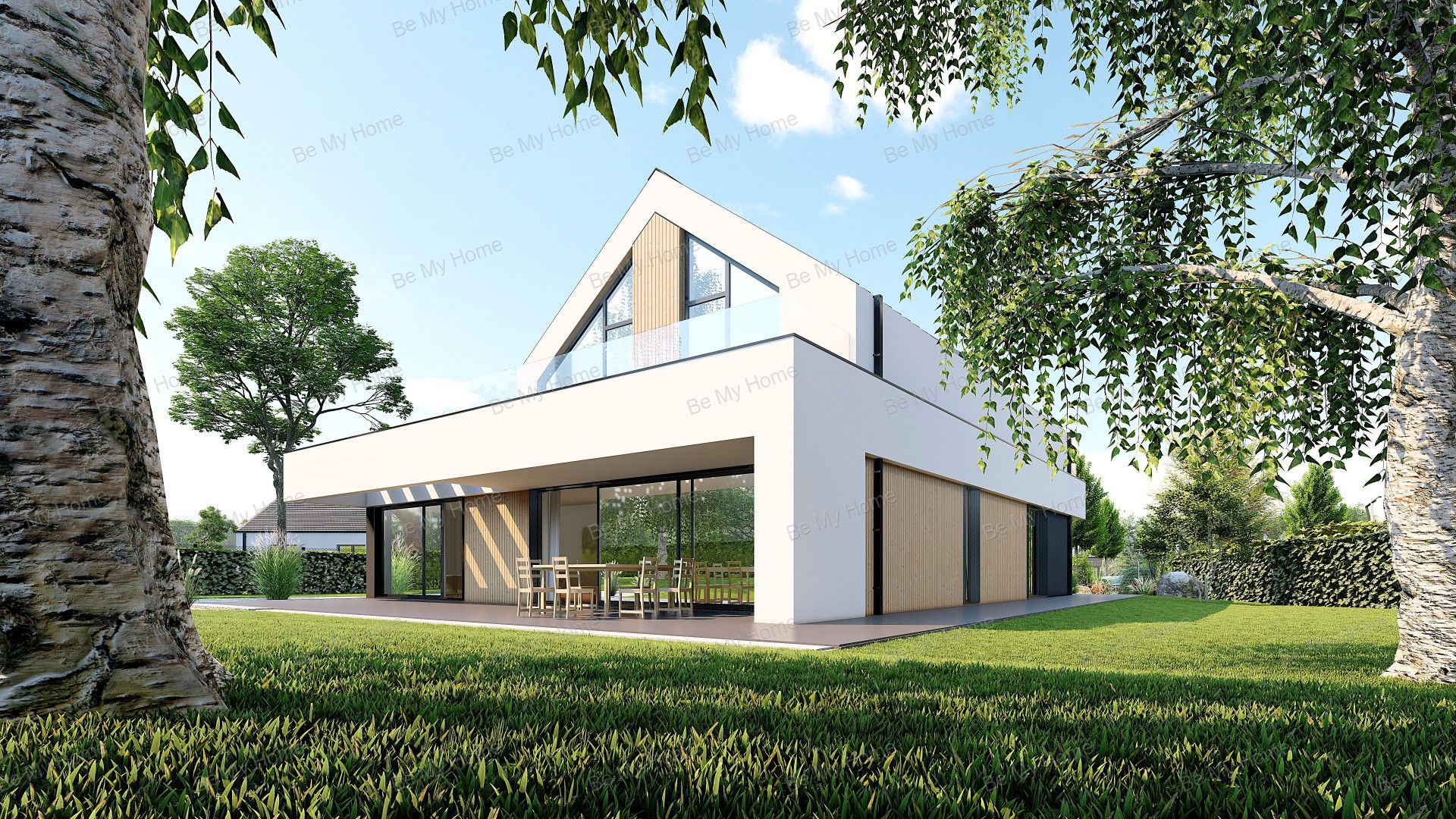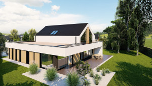 A nettó 274 m²-es, prémium kivitelezésű otthon modern technológiákkal, letisztult eleganciával és extra felszereltséggel készül, kivételesen világos terekkel.