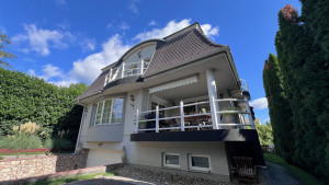 Frankhegy lábánál, nyugodt környezetben eladó egy bruttó 368 nm-es, modern családi ház, amely kiváló elrendezésével és minőségi felszereltségével ideális nagyobb család számára is.