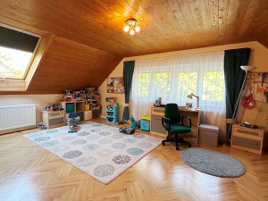 Tetőtér: 2 gyerekszoba, gardrób, fürdőszoba, szülőiháló- panorámás terasszal.
