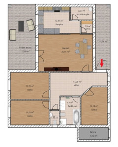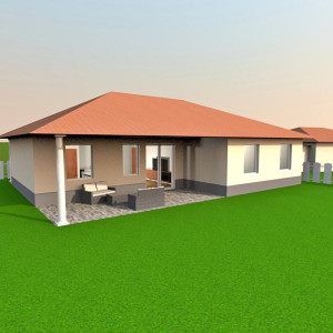 Az ingatlan egy netto 107 nm-es, brutto 125 nm-es ház, melyben nappali és 3 hálószoba kapott helyet! Minden szoba 12 nm felett van! Ehhez tartozik még egy fedett terasz, mely 22 nm-es és egy fedett tornác a bejáratnál, mely 12 nm.
