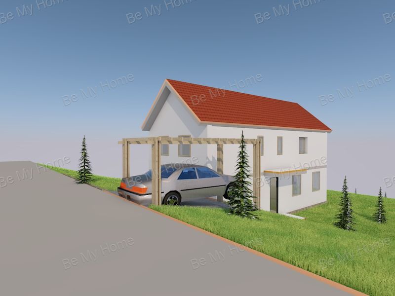 A CSALÁDIHÁZ 587 nm-es telekre épül, fedett autóbeállóval.