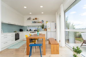 amerikai konyhás nappali + 3 háló + fürdőszoba + előszoba + háztartási helység + hatalmas terasz