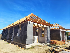 Fót-Kisalagon, kiváló közlekedés mellett, családi házas környezetben újépítésű 130 nm-es, 1 szintes, nappali + 3 hálószobás ikerház leköthető. Átadás: 2026. I.vagy II.negyedév.