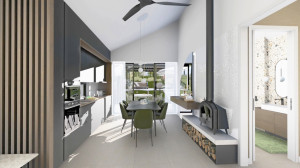 A ház három szobával rendelkezik, így ideális otthont nyújt családok számára. Az épület könnyűszerkezetes technológiával készült, ami nemcsak gyors építést, hanem energiatakarékos megoldásokat is jelent. Az új építésű ingatlan hőszigetelt külsővel  rendelkezik, amely hozzájárul a szigetelési hatékonysághoz, így a fenntartási költségek alacsonyan tarthatók.