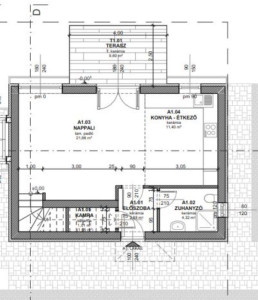 Az emeleten három hálószoba (2 x 8,84 nm és egy 13,06nm), és egy 5,6 nm-es fürdőszoba és egy 4,4 nm-es közlekedő kerül kialakításra.