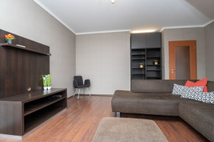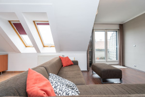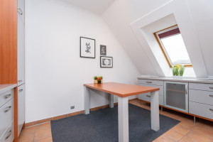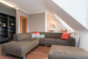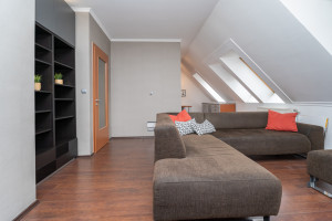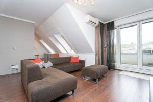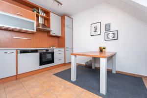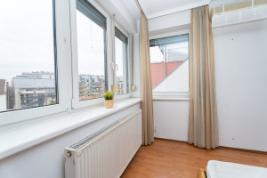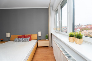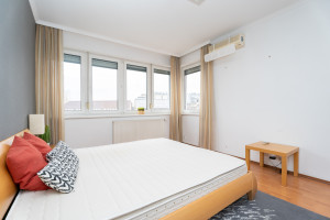 A nappali-konyha-étkező-terasz: nyugati fekvésű, panorámás, a hálószobák keleti fekvésűek és a csendes Lajos utca felőli oldalra néznek.