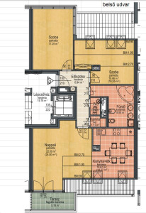 hatalmas sarokkádas fürdő mellett további egy wc is rendelkezésre áll, valamint lakáson belül egy 1.2nm-es kamra is nyílik a folyosóról, így praktikusan pakolható, élhető ingatlanról beszélhetünk.