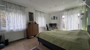 A 6 lakásos társasház déli lejtőn áll, gyönyörűen gondozott közös kerttel. A nappali az 1. emelet, a hálók a földszint magasságában helyezkednek el.