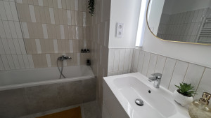 Az ingatlan teljes körűen felújított: új, háromrétegű nyílászárók kerültek beépítésre, az elektromos hálózatot teljesen kicserélték, az eredeti tölgyfa parketta pedig szakszerű felújítást kapott. A praktikumot és a kényelmet egyedileg készített, asztalosmunkával készült konyhabútor és beépített szekrények szolgálják. A fűtés egyedi mérésű távfűtésről működik, a nyári hűtést pedig három inverteres klíma biztosítja.